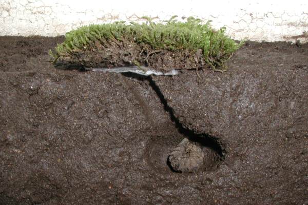Gさらにその上にコケをのせます。(乾燥防止と穴の内部を暗くするため)