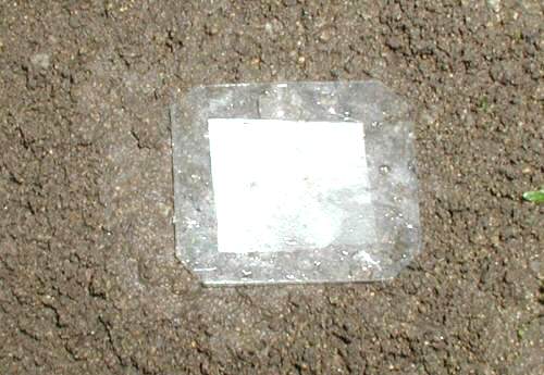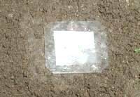 F幼虫を入れた穴の上に乾燥防ぐため、ラップを乗せ、その上にプラスチック板を乗せる。