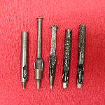 | @穴カガリの位置(25mm) | Aコの字に縫う | B3mm(ハトメ)の穴を左右均一に開けましょう。 中心をノミで切りましょう。 |