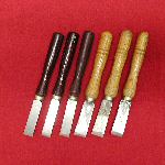 G穴カガリ縫い(ハトメ穴カガリ) ■糸は、(布地同色)絹の穴糸、8番手テトロン糸を使いましょう。 ■穴カガリの練習: 25mm釦ホールをつくりましょう(22mm釦用) ○練習のときは、釦付け糸で挑戦してみましょう。23mmホールで糸の長さ約68cmです。 ■穴カガリをする箇所、布地裏側に芯地を張っておきましょう。 @穴カガリの位置25mm.の(チャコ)しるしをつけましょう。(時間がたつと消えるチャコを使っています) A布地同色糸でチャコから2mm.巾でコの字に、本縫いミシンで縫っておきましょう。(コの字に縫った方へ、ハトメ穴を開けます)ミシンで縫う目的は、穴カガリをする時、針目を揃える目安にします。 Bミシンで縫った、コの字の方へ3mm(ハトメ)の穴を左右均一に開けましょう。チャコの上をノミで、真直ぐ切りましょう。(ハサミでも可能です) C穴カガリの芯:次の番号順に縫いましょう。@の裏から表に針を抜きます。Aの表から針を刺しBの裏から表に針を抜きます。Cの表から針を刺し@の裏から表に針を抜きます。 DC-@〜Cまでの作業が済み@に針を差したところです。(見本です) ●ここからカガリ縫いの始まりです。 E中心の切り口から針を布地裏側へ、一針目の横(ミシン縫い目スレスレ外側)に正確に針を出しましょう。 F針を約3分の1出し糸を1回(時計回り)巻き付け、針を右の方へ抜きましょう。 G針目を揃える為。一針目からハトメ穴の手前まで、針目と締める力、糸を抜く方向を同じにしましょう。 HGの反対側もGと同じ縫い方で、切り口最後まで縫いましょう。 Iカン止めの縫い方:中心裏側から、左側縫い始めのところに性格に針を表に出しましょう。 J縫い終わりのところに、針を表から裏に抜き、縫い始めのところへ裏から刺し、表に抜きましょう。 K抜いた針は、中心(切り口)糸の手前に刺し、裏に出た針を切り口から表に出し、糸をまたぎ刺した横に針を刺しましょう。(2回巻き)最後に裏でコブを作り、糸を切りましょう。 L出来上がりは:目打ちなどで整えておきましょう。 M目打ちの画像 Nノミの画像 |
